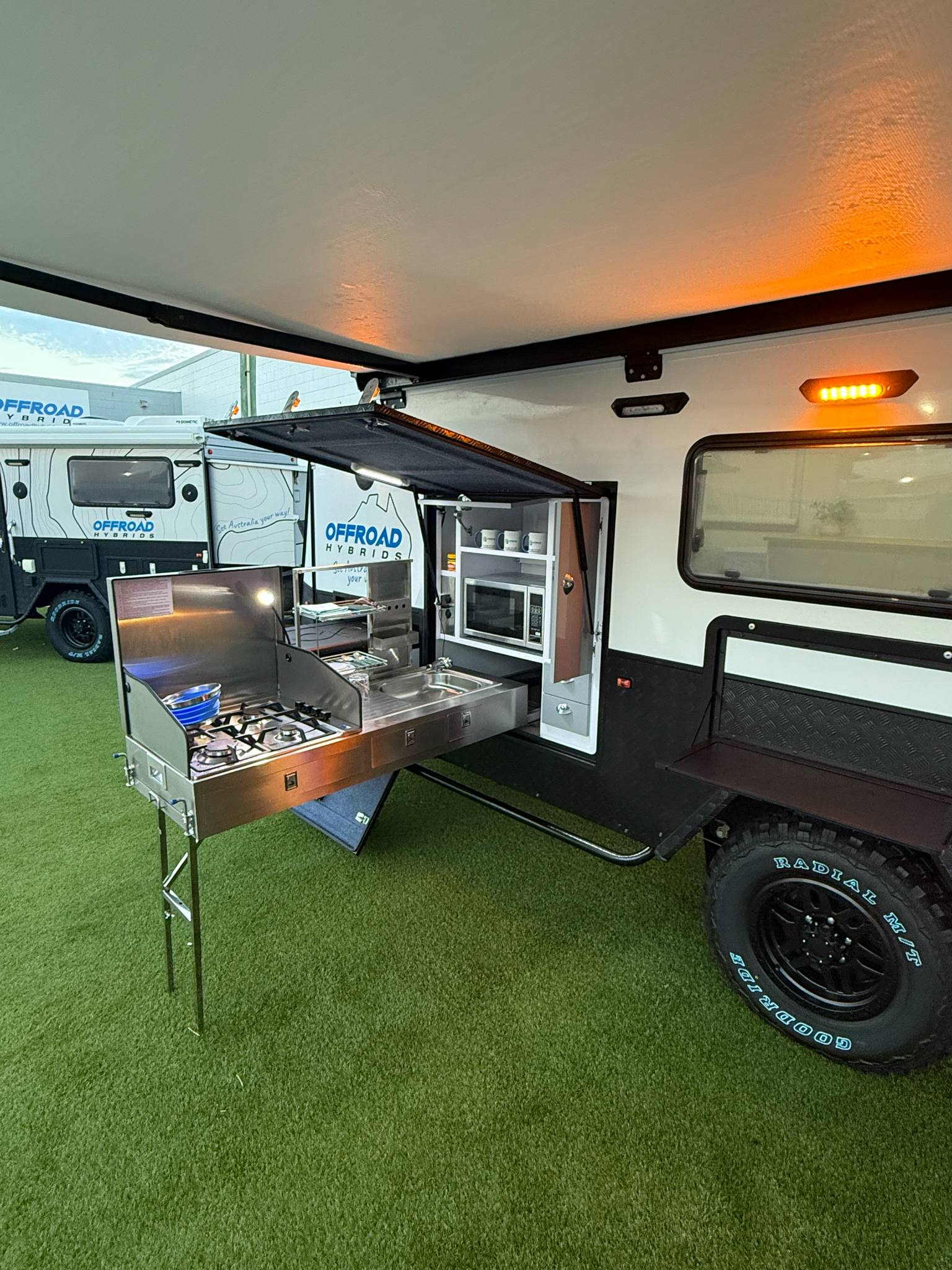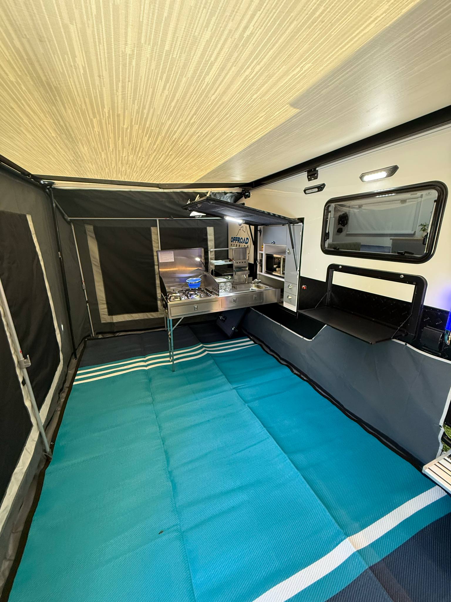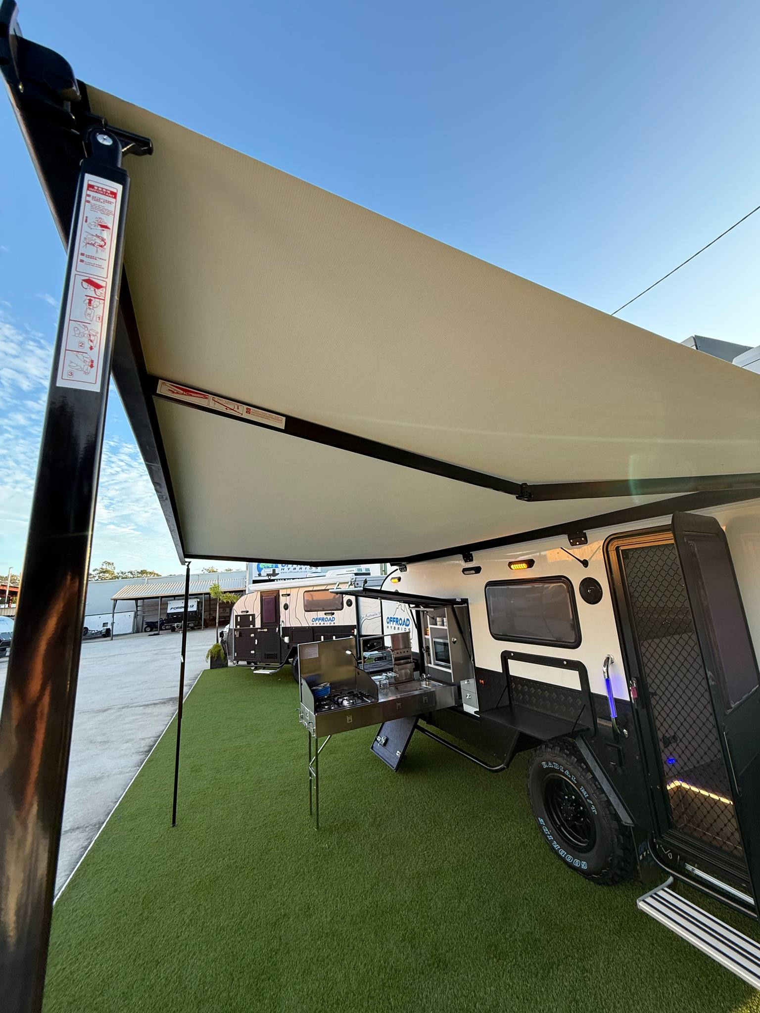 • All our Hybrids come standard with waterproof outside awnings and walls so as to allow for extra undercover space for your family to relax and enjoy