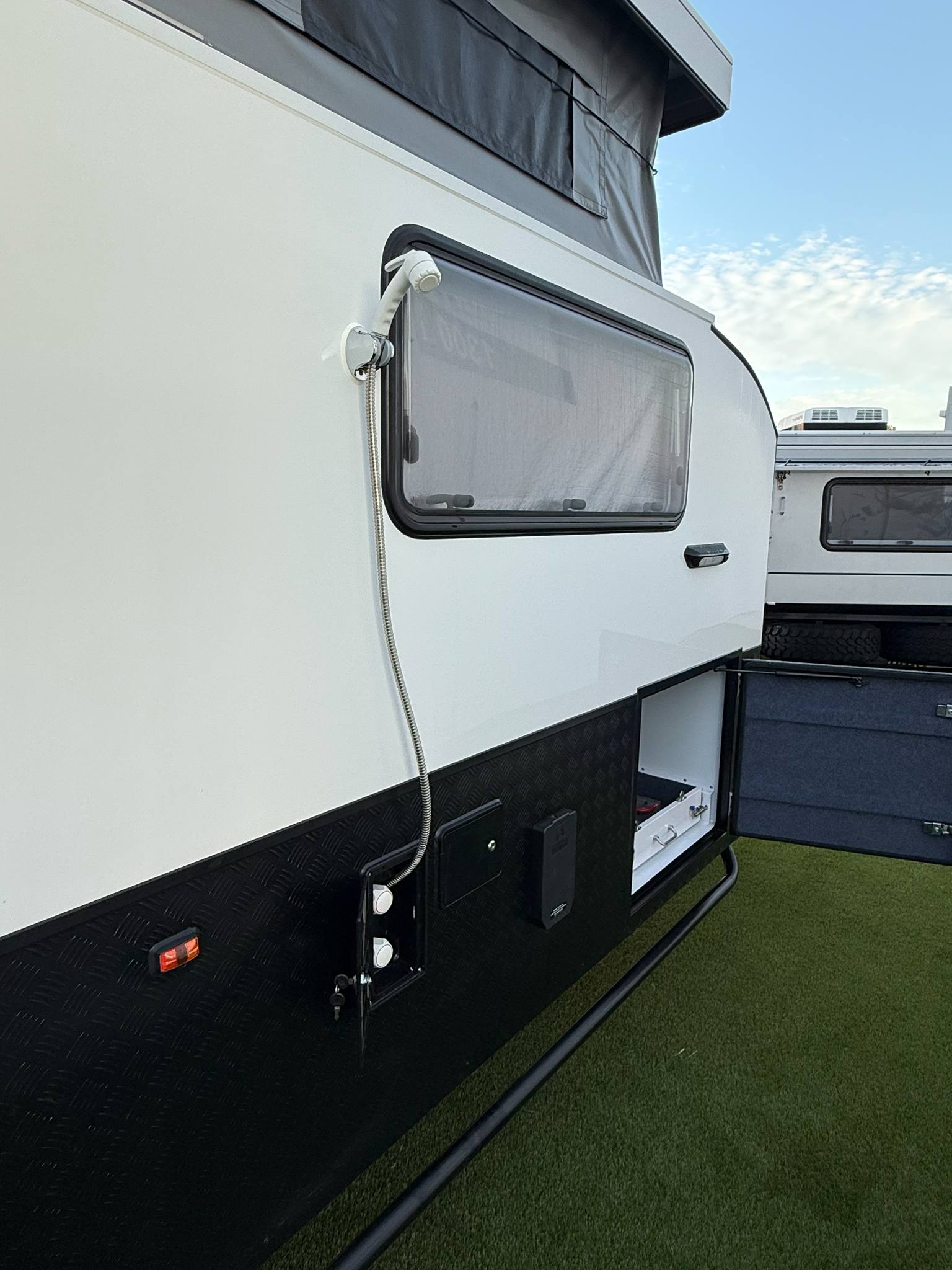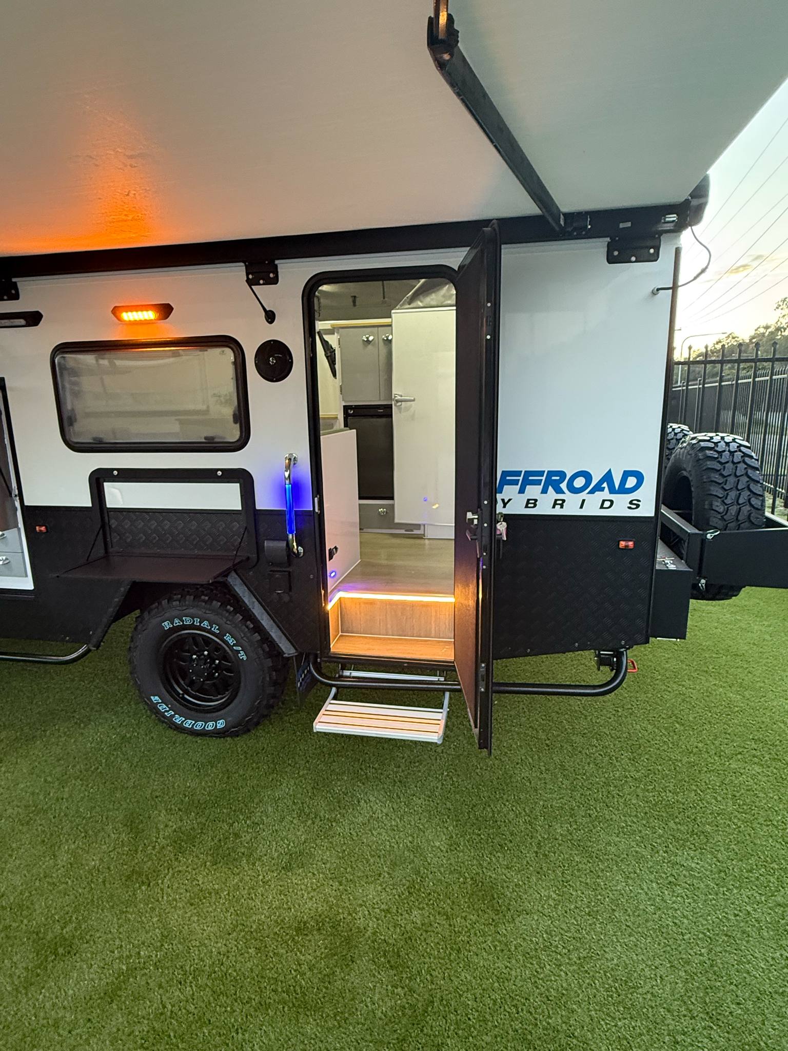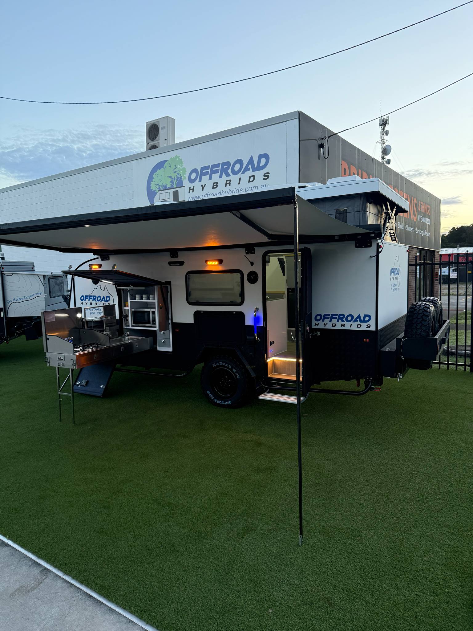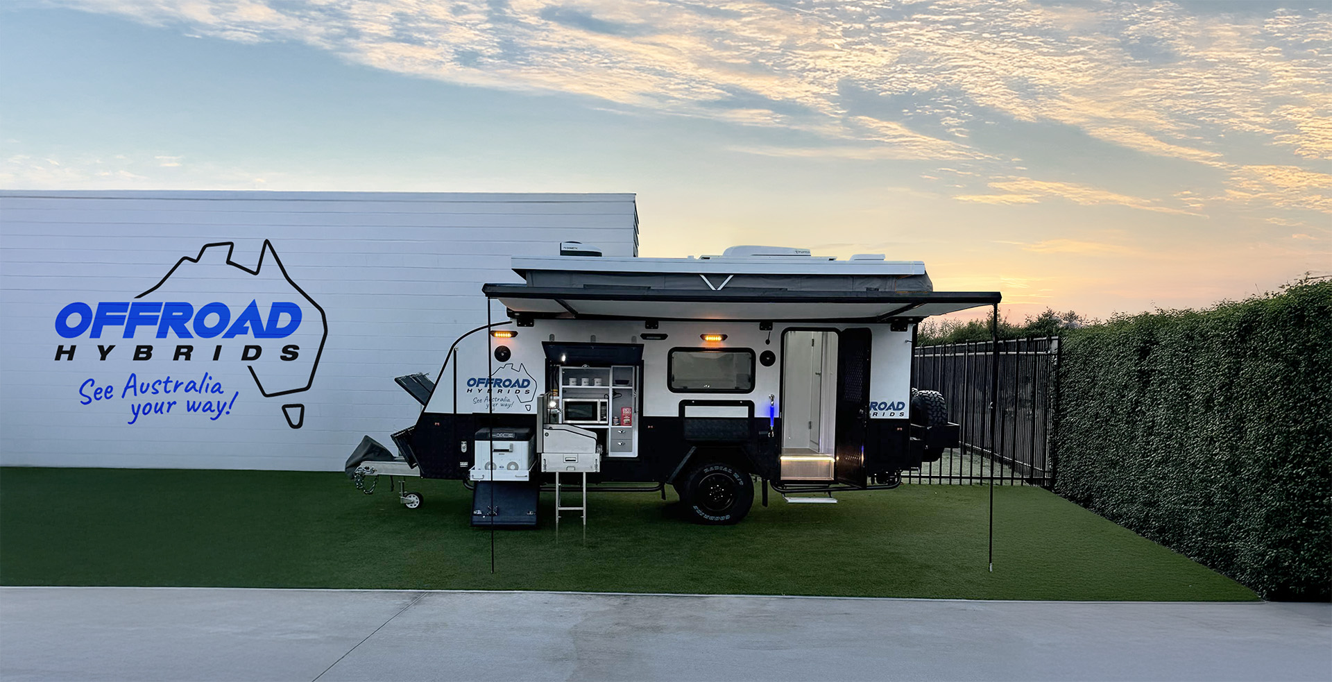 • All our Hybrids come standard with waterproof outside awnings and walls so as to allow for extra undercover space for your family to relax and enjoy