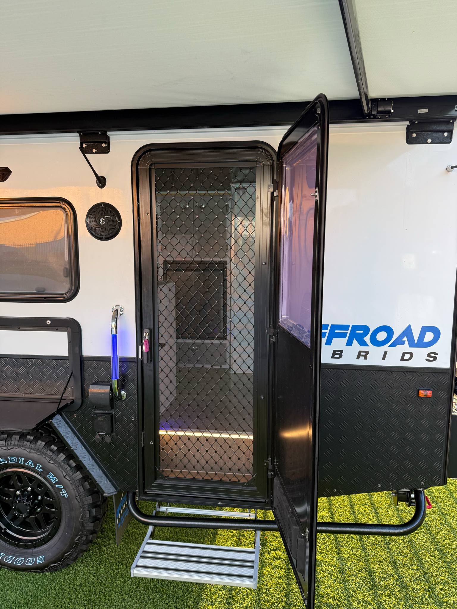 - Electric roof with internal windows & midge proof mesh